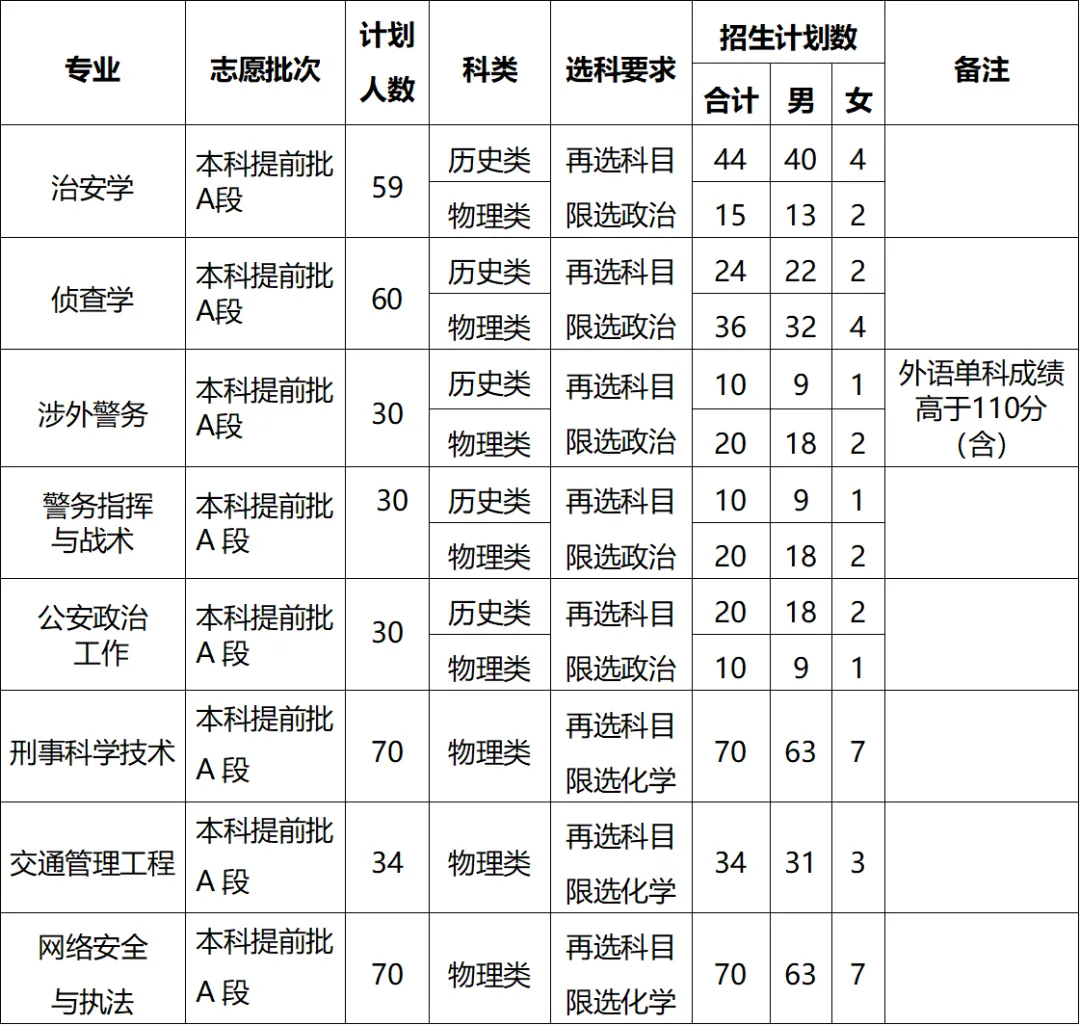 其中公安学类专业招生总数为383人,不同专业的招生计划详情见下: