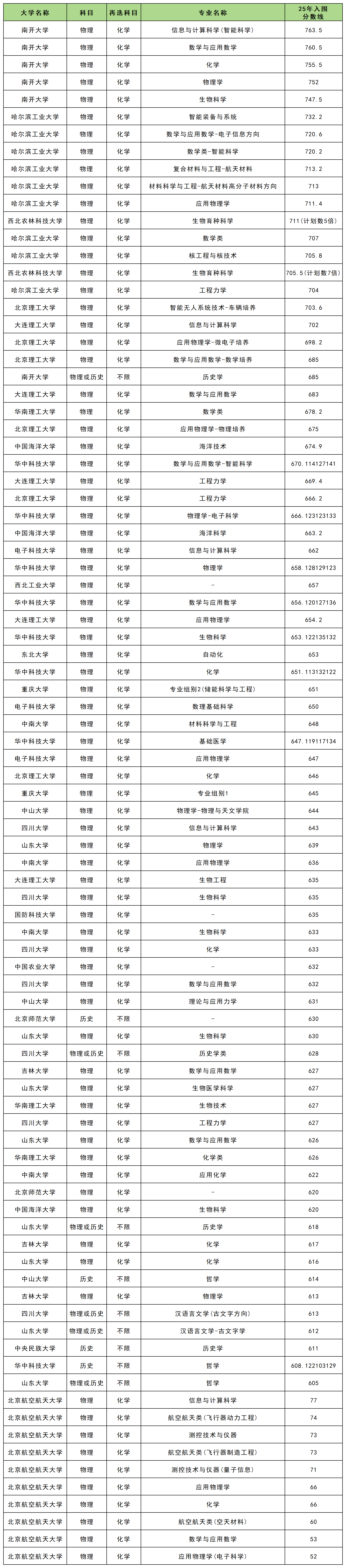 河南强基计划的招生院校有东北大学、北京理工大学、中山大学等39所高校,2025年各高校强基计划在河南的入围分数线为:北京理工大学物理类646分、东北大学物理类653分、中山大学历史类614分等。