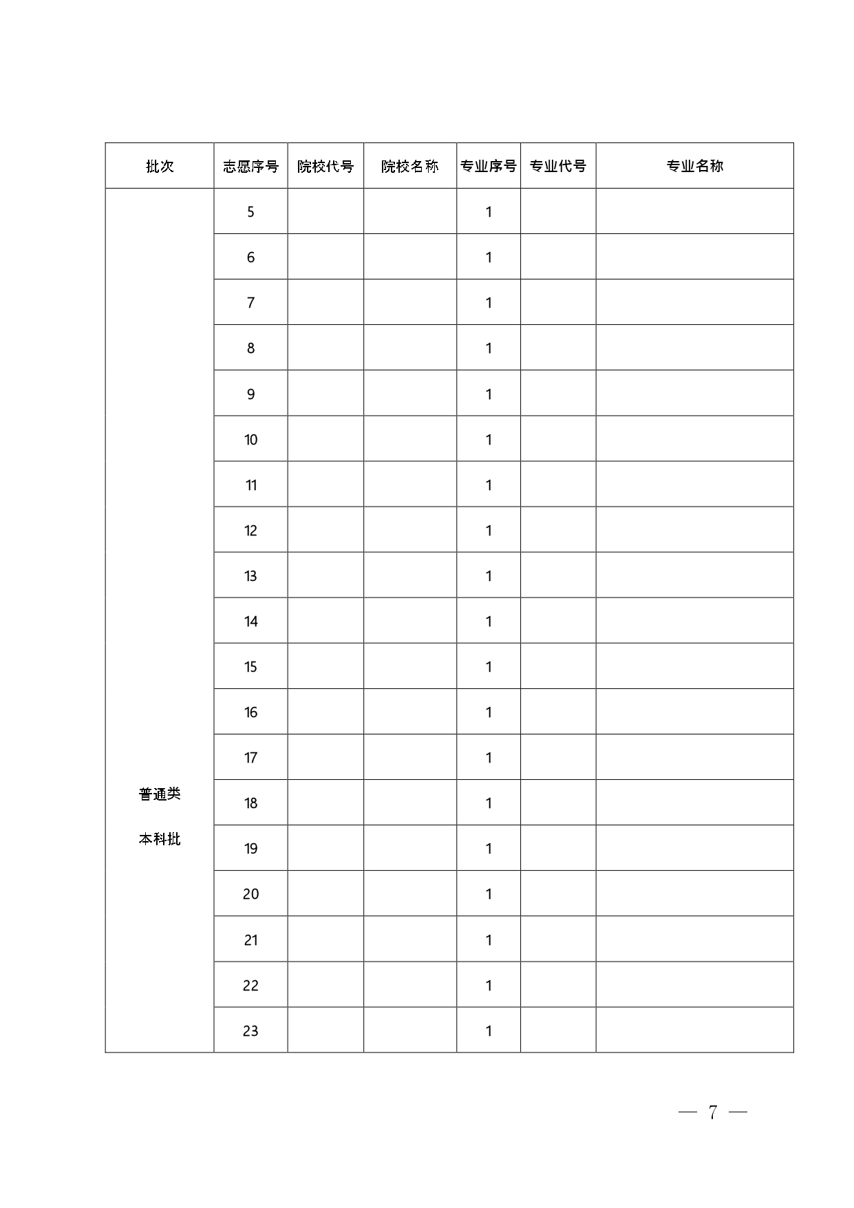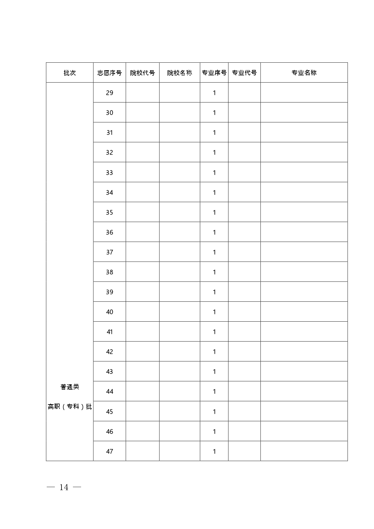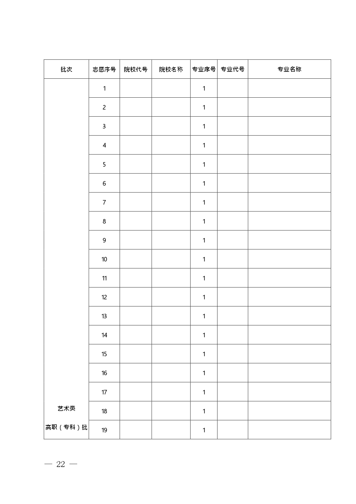 (5)高职(专科)提前批:设置1个院校顺序志愿。