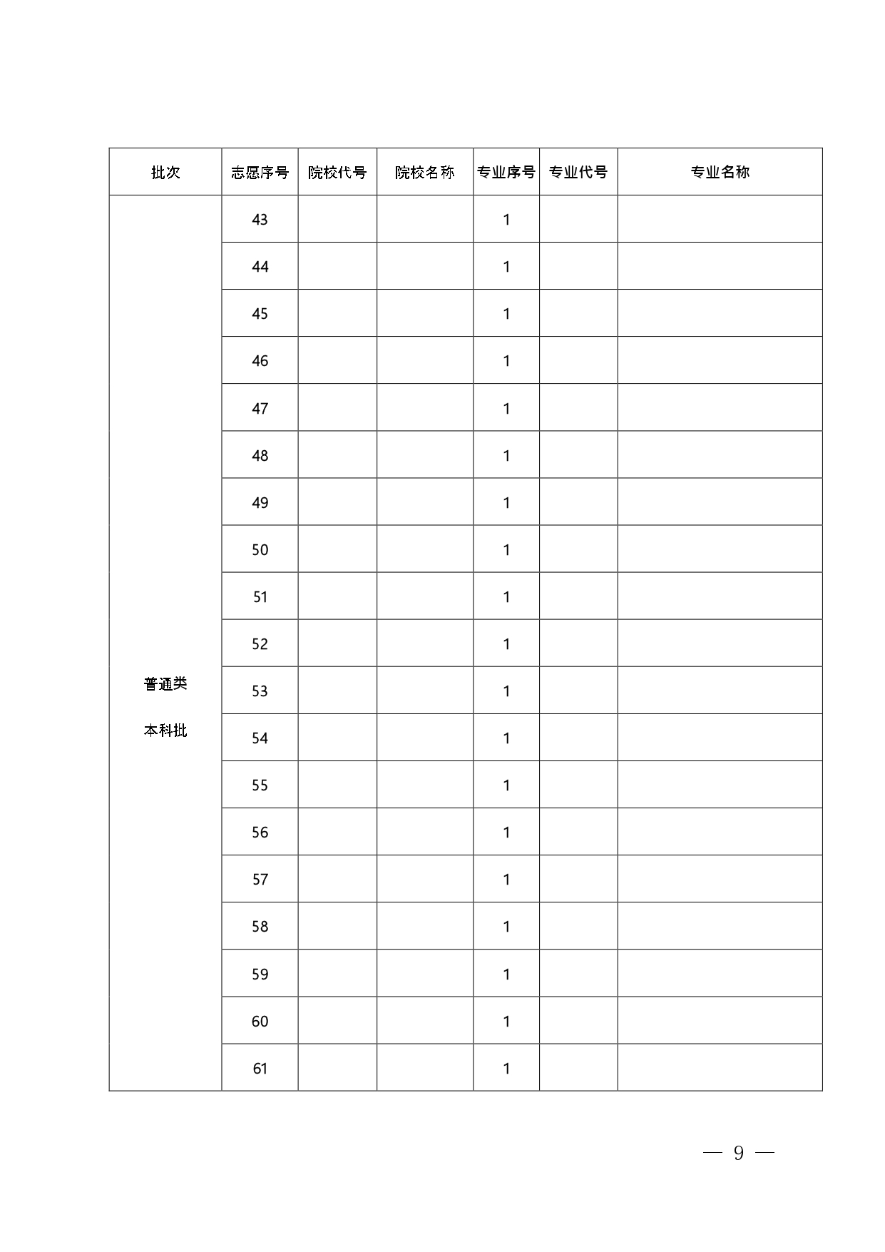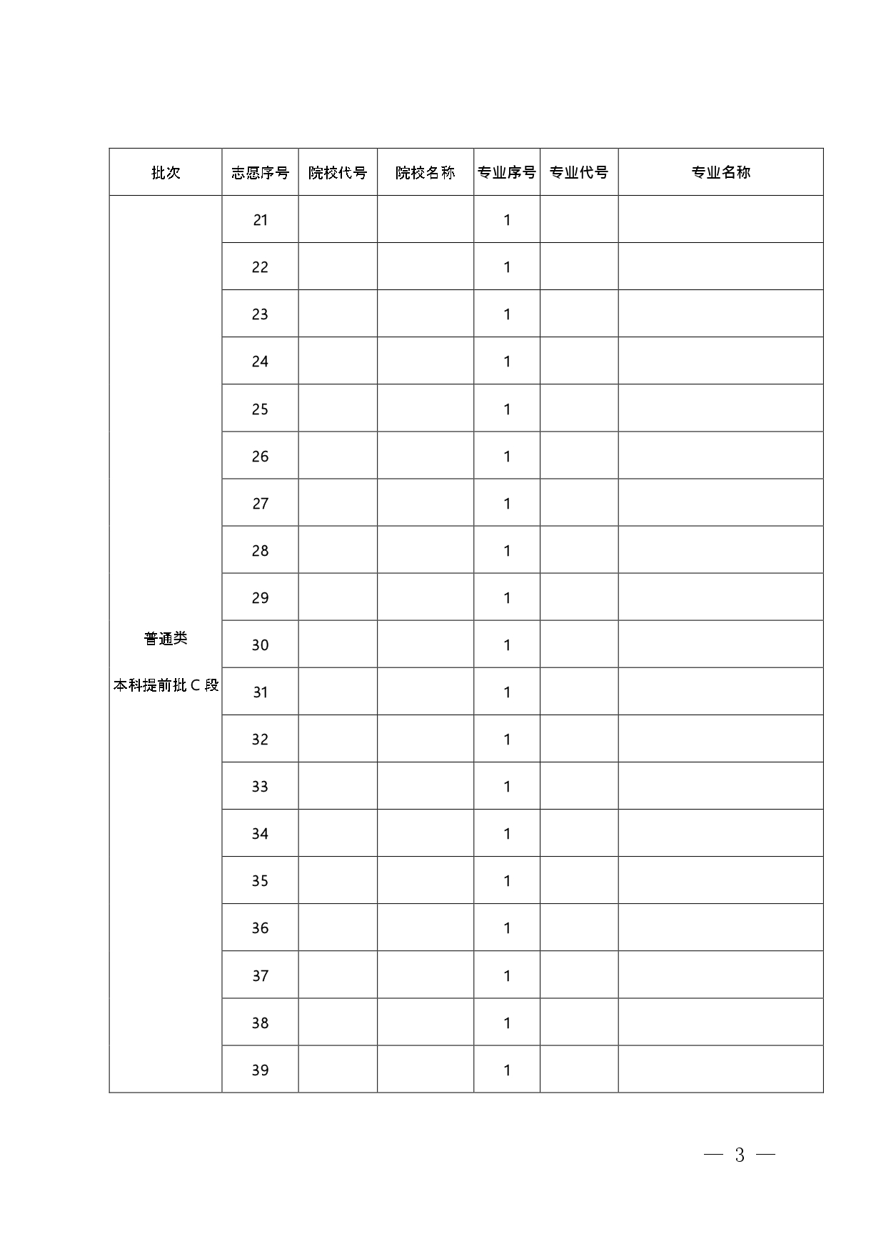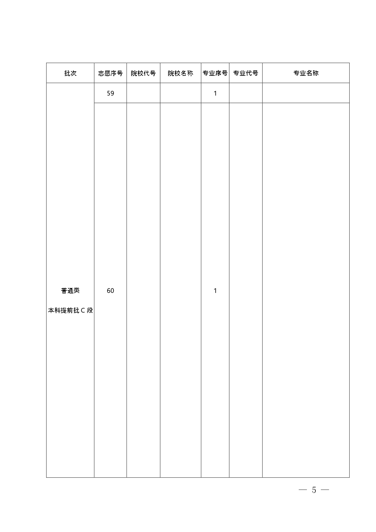 (3)本科提前批C段:设置60个专业(类)平行志愿。