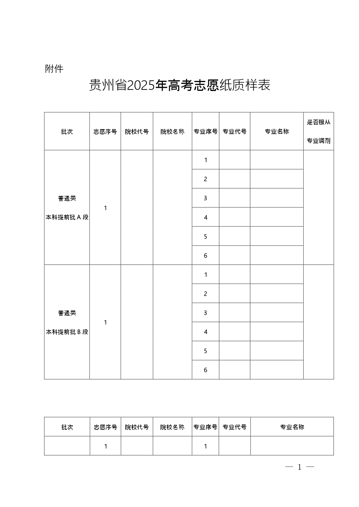 2025年贵州省高考志愿填报草表已经出炉,其中本科提前批C段可以填报60个专业(类)平行志愿,本科批最多可以填报96个专业(类)平行志愿等。具体的志愿设置情况以及志愿草表可在正文中查阅。