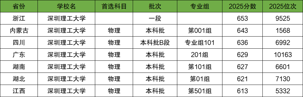 2025年深圳理工大学面向全国8个省份招生357名本科生,其中深圳理工大学最低录取分为612分,为江西省物理类,最高录取分为653分,为浙江省。