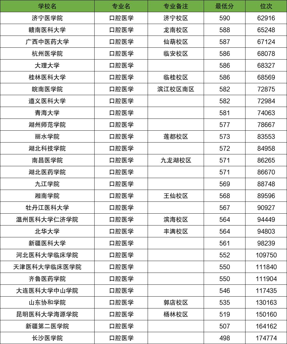 本期小编便为大家带来口腔医学二本大学最低分数线,以及口腔医学大学排名,供2026年考生参考。
