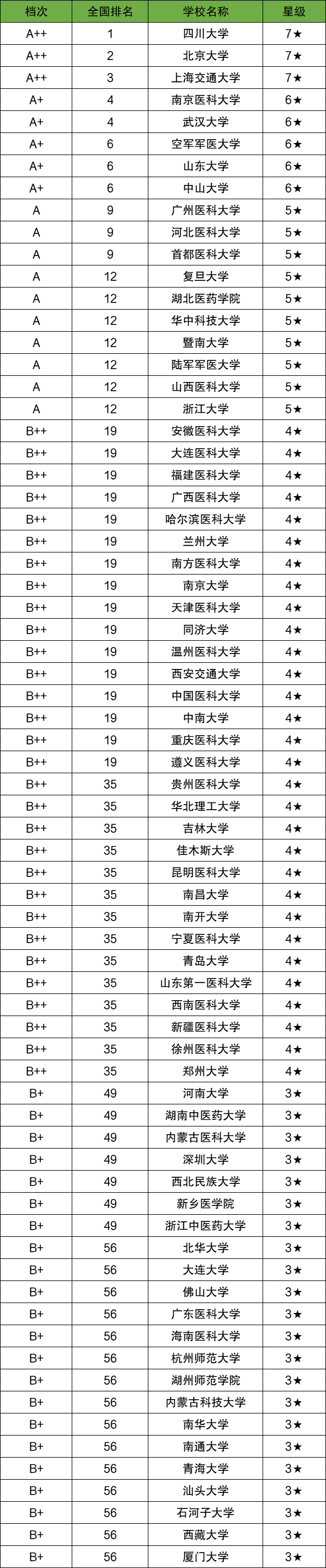 因为各个榜单都是对所有本科大学进行排名,因此以下为2025年校友会口腔医学本科大学排名。