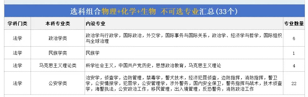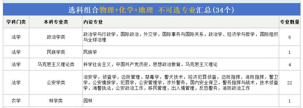 对应的专业有生物科学、机械工程、材料科学与工程等706个专业,涵盖12个学科门类,不可报专业只有政治学与行政学、治安学等33个专业。
