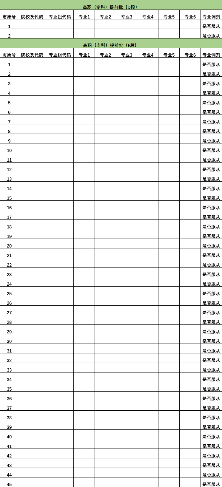 (5)高职(专科)提前批(E段):设置45个院校专业组平行志愿。