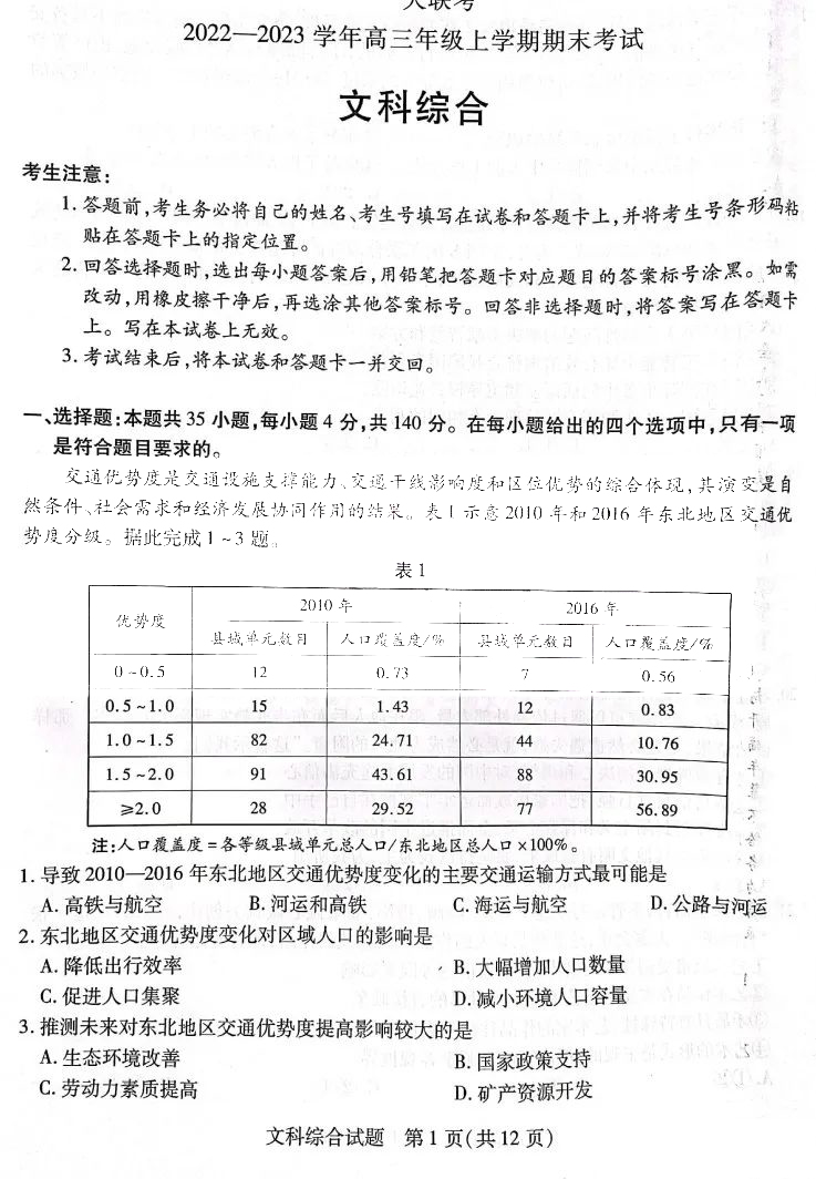 二、天一大联考2022-2023高三期末考试政治试卷汇总