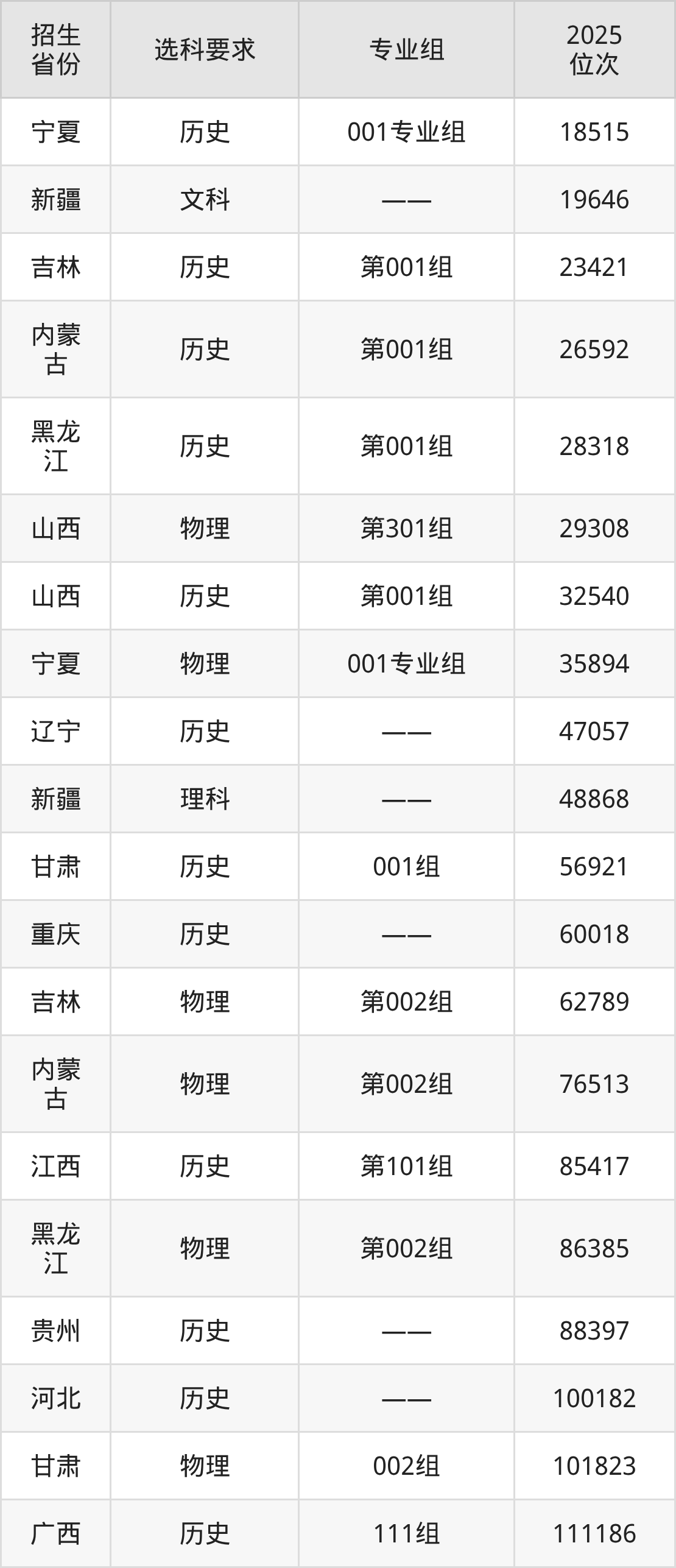 大连职业技术学院2025年在全国各省的位次差异较大,最高位次是18515位(宁夏历史类)、最低位次是373934位(山东)。各省具体位次请看下图: