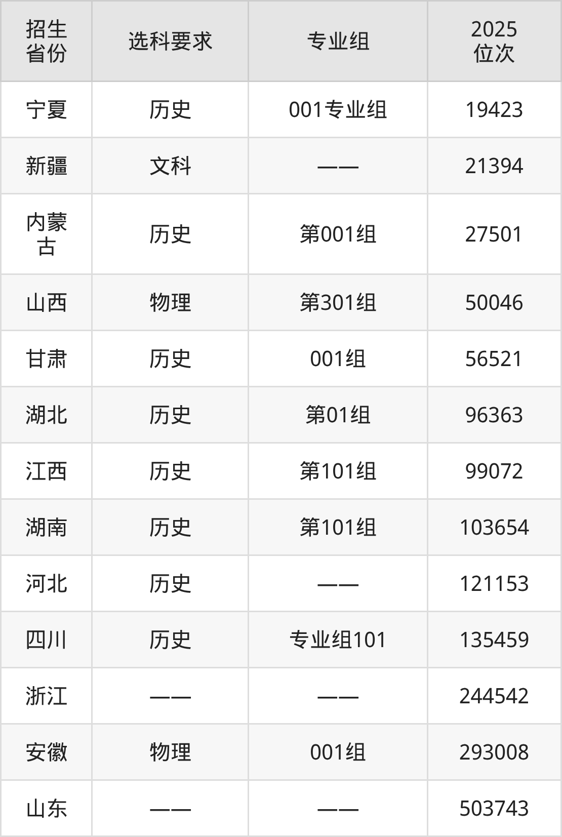 郑州旅游职业学院2025年在全国各省的位次差异较大,最高位次是19423位(宁夏历史类)、最低位次是503743位(山东)。各省具体位次请看下图: