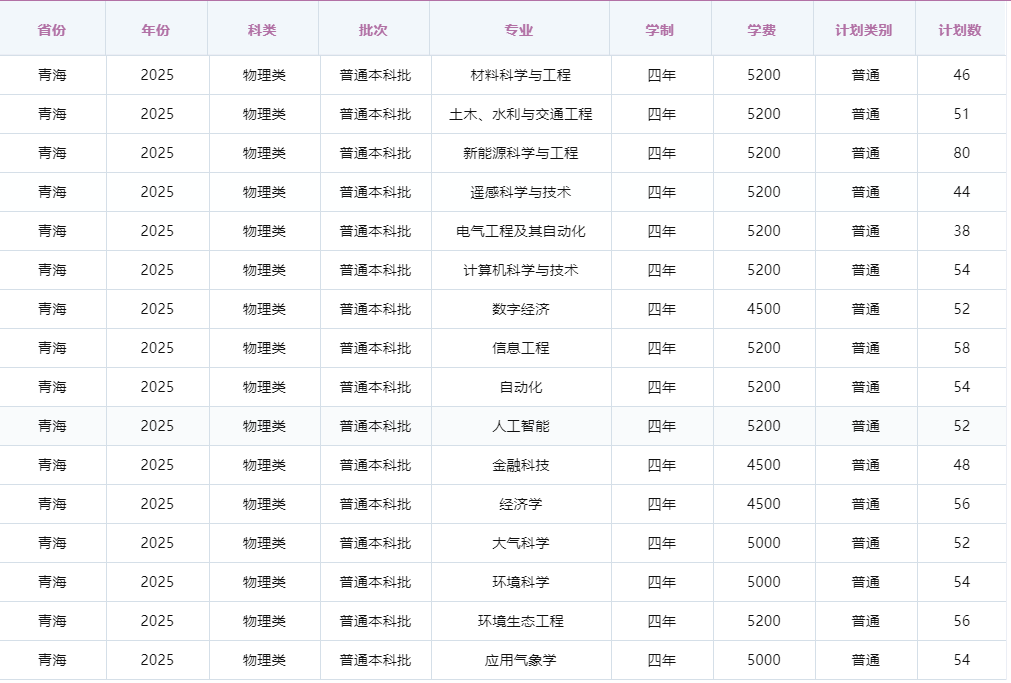 2025年青海理工学院在省内招生计划人数:849人,只在物理类招生,各专业招生计划人数如下: