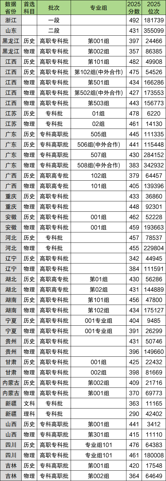 录取分数:2025年甘肃物理类419分、山东二段471分即可录取,性价比极高。