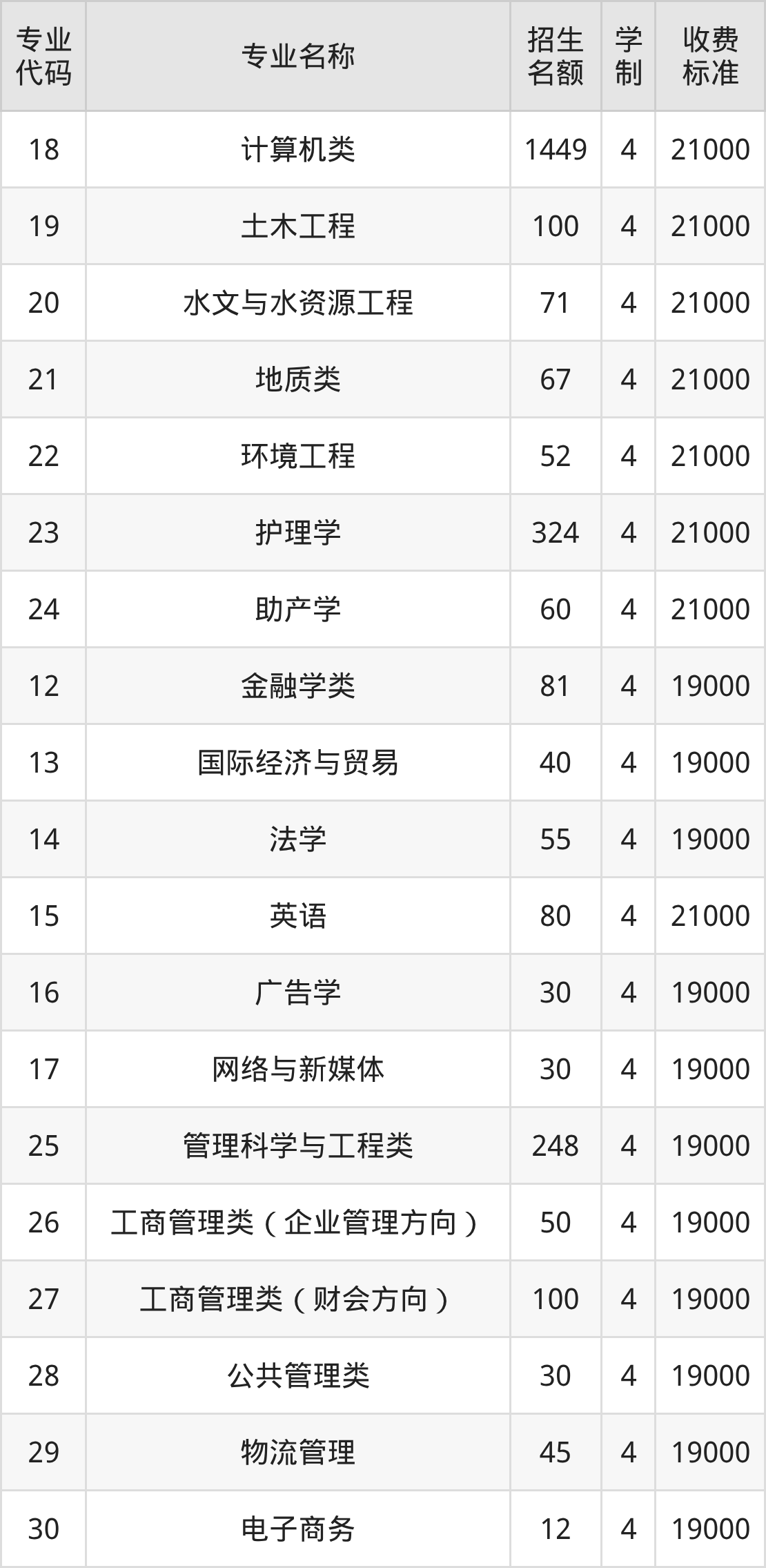 | 专业 代码 | 专业名称 | 招生 名额 | 学 制 | 收费 标准 |
