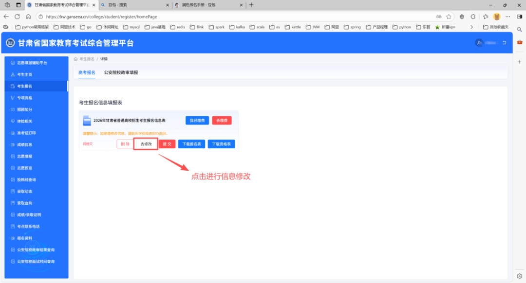 (1)未提交时:若核对草表发现错误,直接在报名系统点击 “修改” 按钮,修正错误信息后重新核对,确认无误再提交。