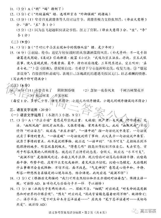1、2022年云南第一次省统测语文答案