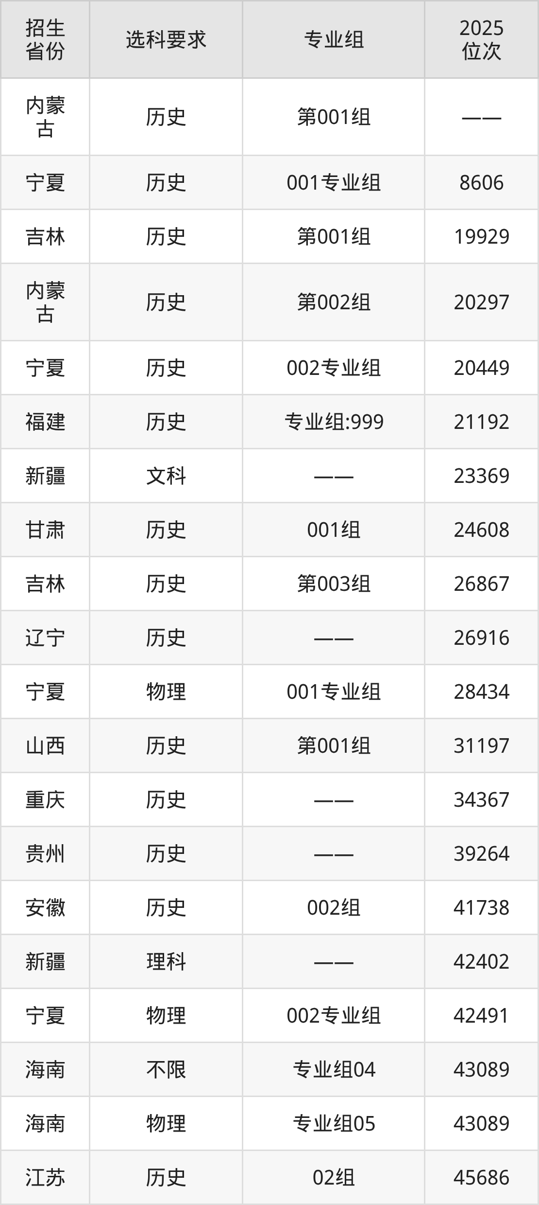 海南科技职业大学2025年在全国各省的位次差异较大,最高位次是8606位(宁夏历史类)、最低位次是676047位(山东)。各省具体位次请看下图:
