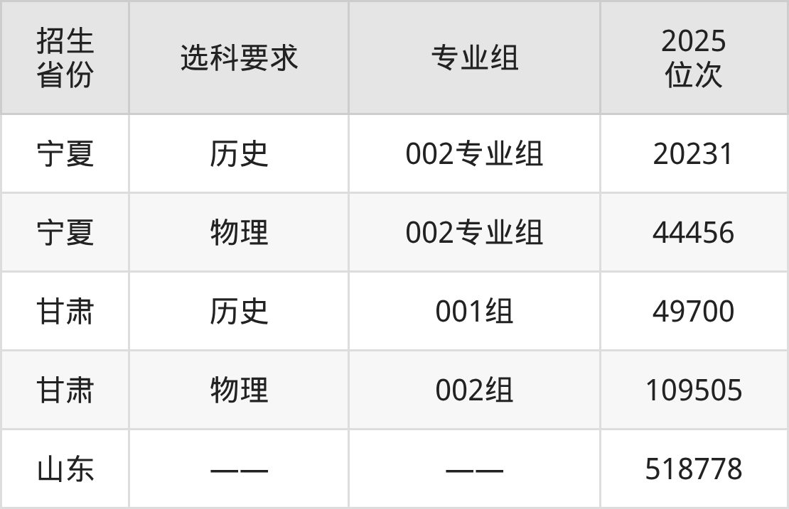 宁夏建设职业技术学院2025年在全国各省的位次差异较大,最高位次是20231位(宁夏历史类)、最低位次是518778位(山东)。各省具体位次请看下图: