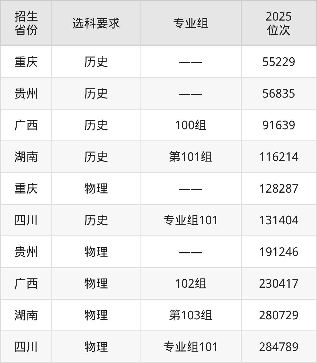 贵阳幼儿师范高等专科学校2025年在全国各省的位次差异较大,最高位次是55229位(重庆历史类)、最低位次是284789位(四川物理类)。各省具体位次请看下图: