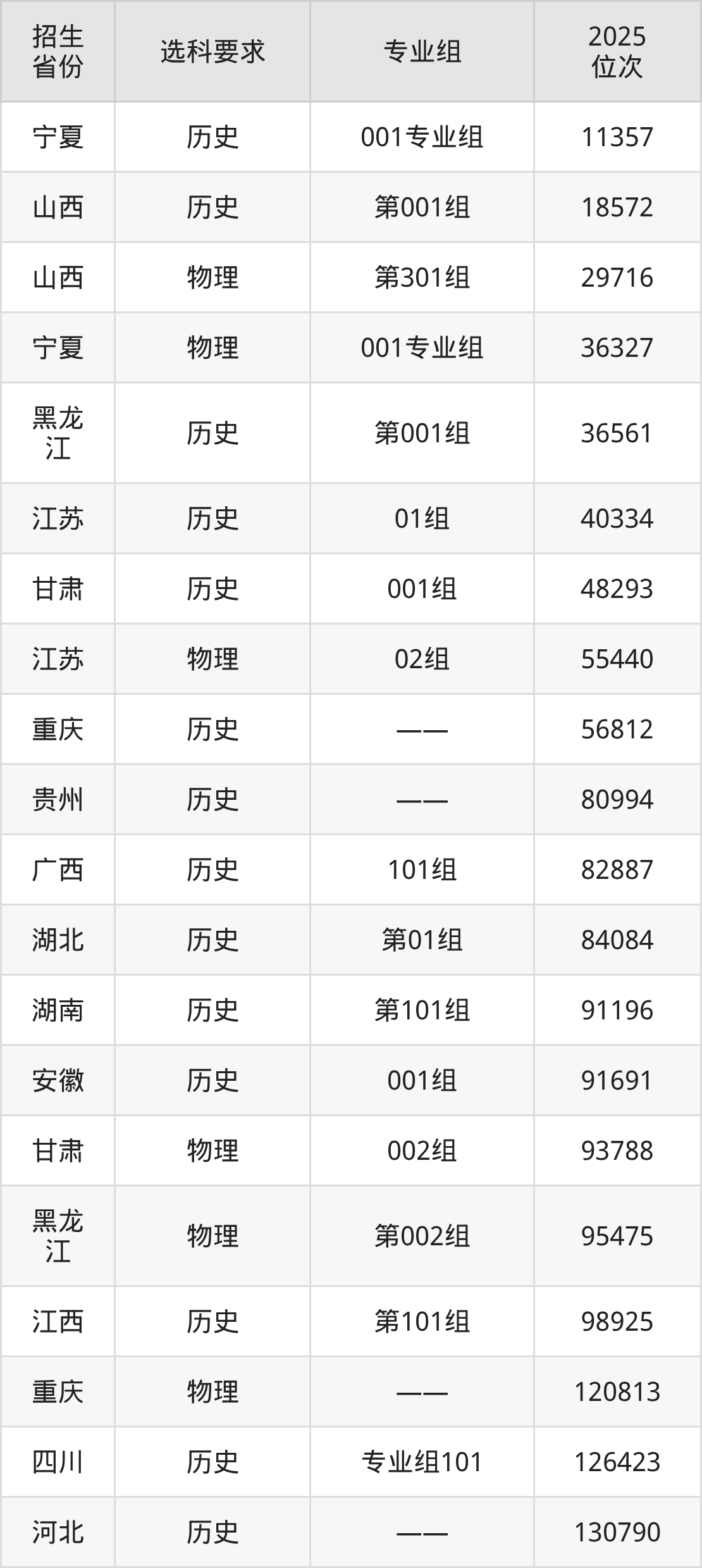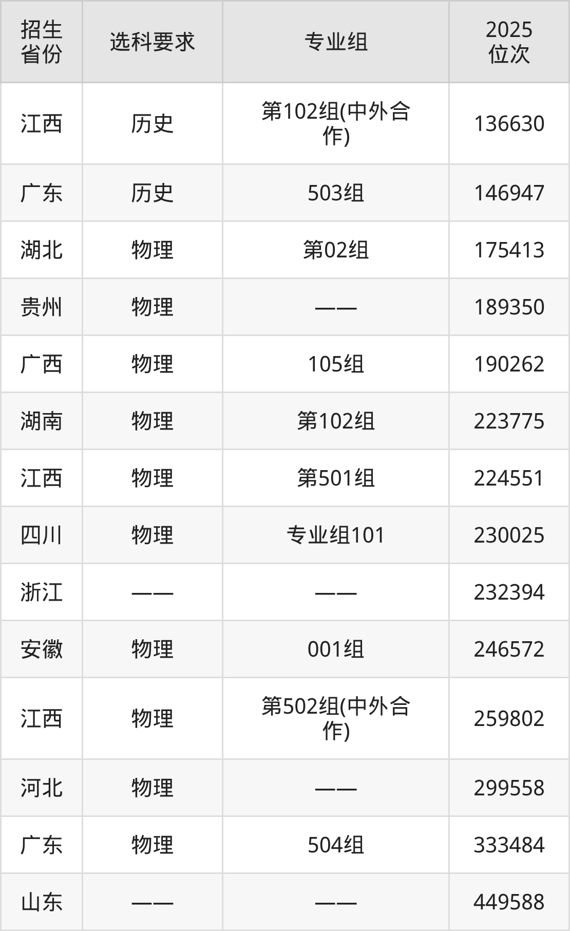 江西机电职业技术学院2025年在全国各省的位次差异较大,最高位次是11357位(宁夏历史类)、最低位次是449588位(山东)。各省具体位次请看下图: