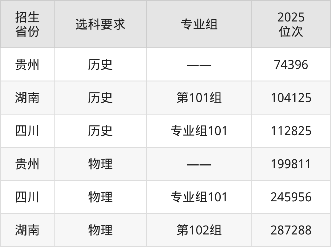 贵州建设职业技术学院2025年在全国各省的位次差异较大,最高位次是74396位(贵州历史类)、最低位次是287288位(湖南物理类)。各省具体位次请看下图: