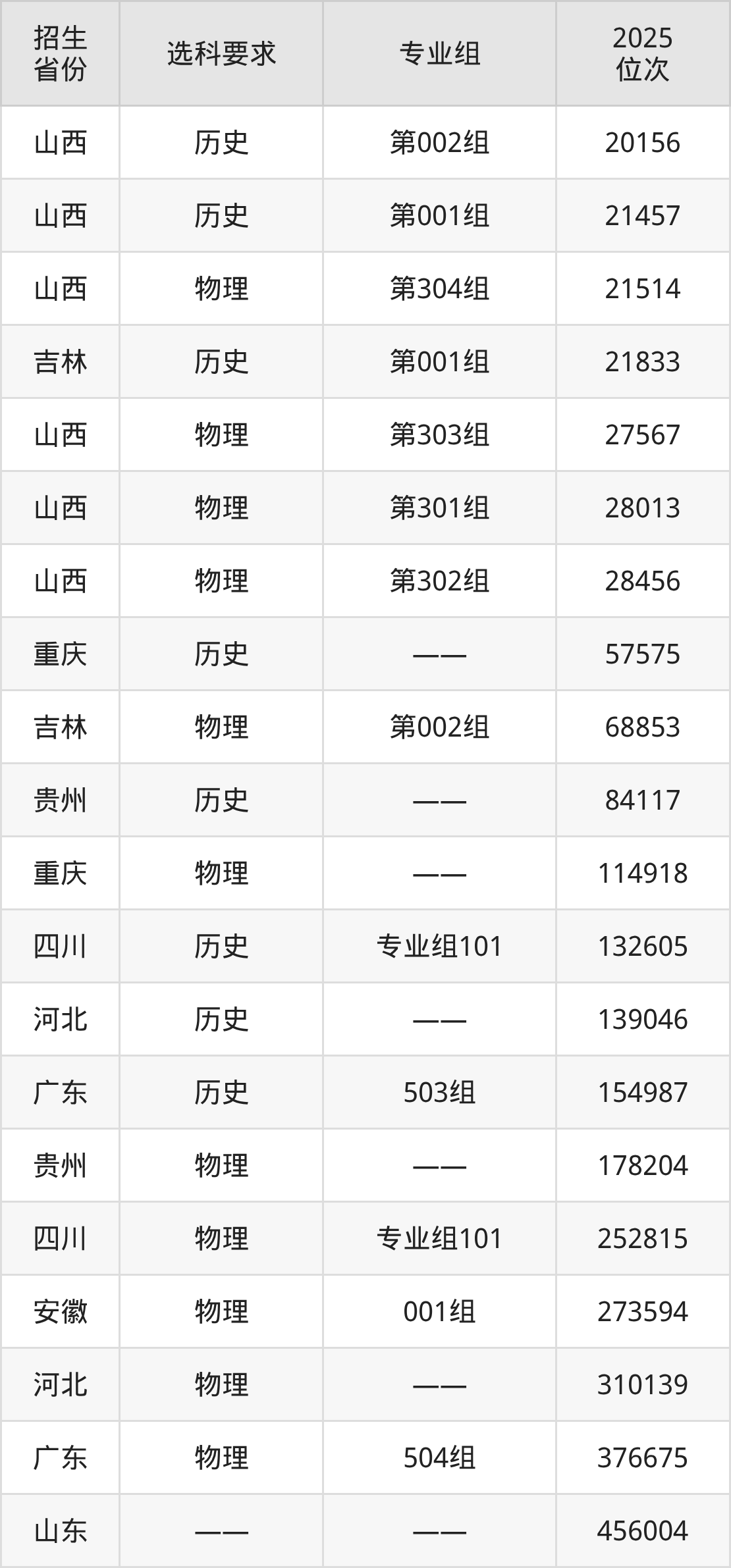 河北软件职业技术学院2025年在全国各省的位次差异较大,最高位次是20156位(山西历史类)、最低位次是456004位(山东)。各省具体位次请看下图: