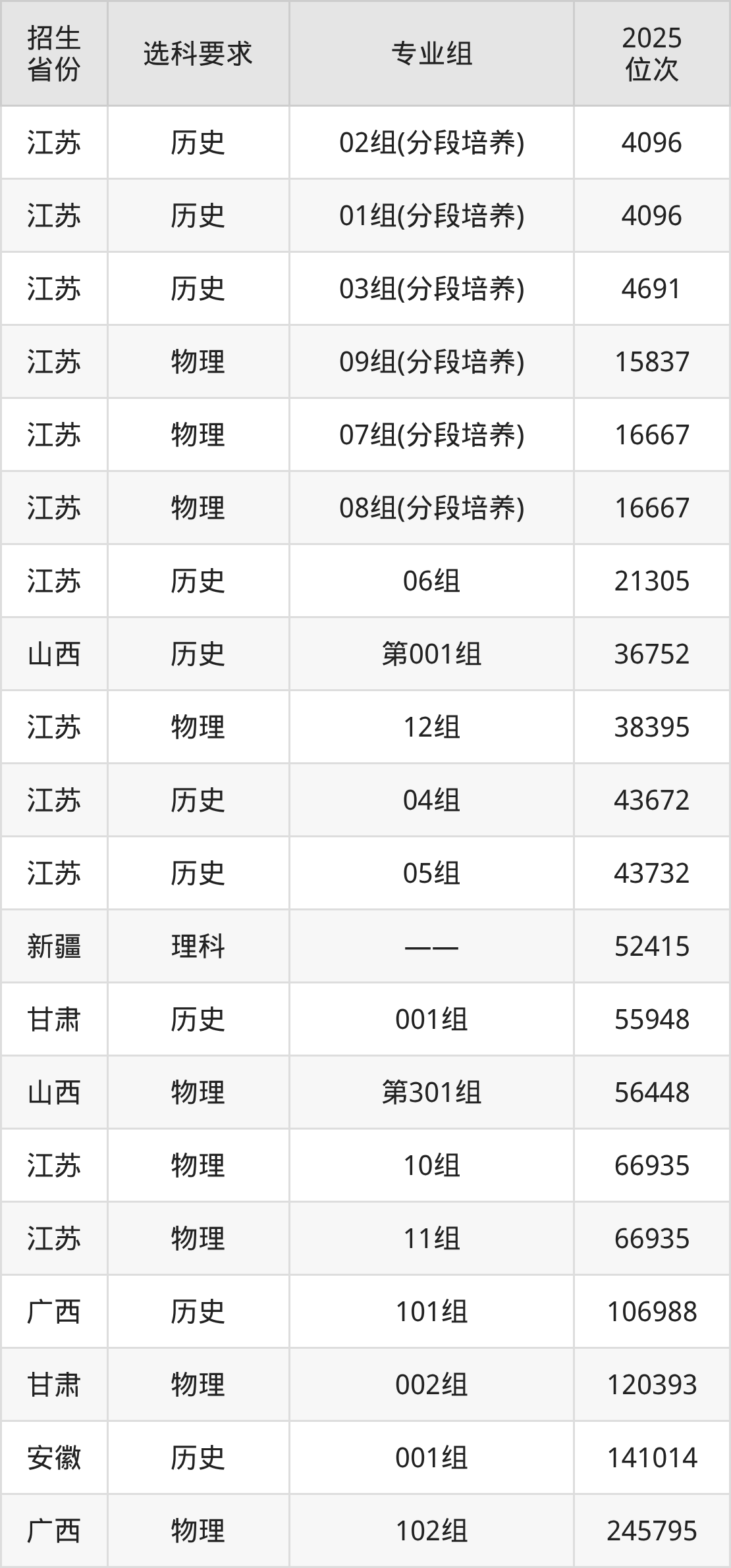 钟山职业技术学院2025年在全国各省的位次差异较大,最高位次是4096位(江苏历史类)、最低位次是541960位(山东)。各省具体位次请看下图: