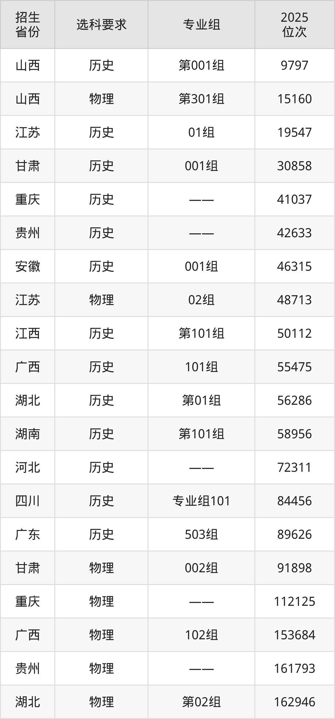 江苏城市职业学院2025年在全国各省的位次差异较大,最高位次是9797位(山西历史类)、最低位次是268119位(广东物理类)。各省具体位次请看下图: