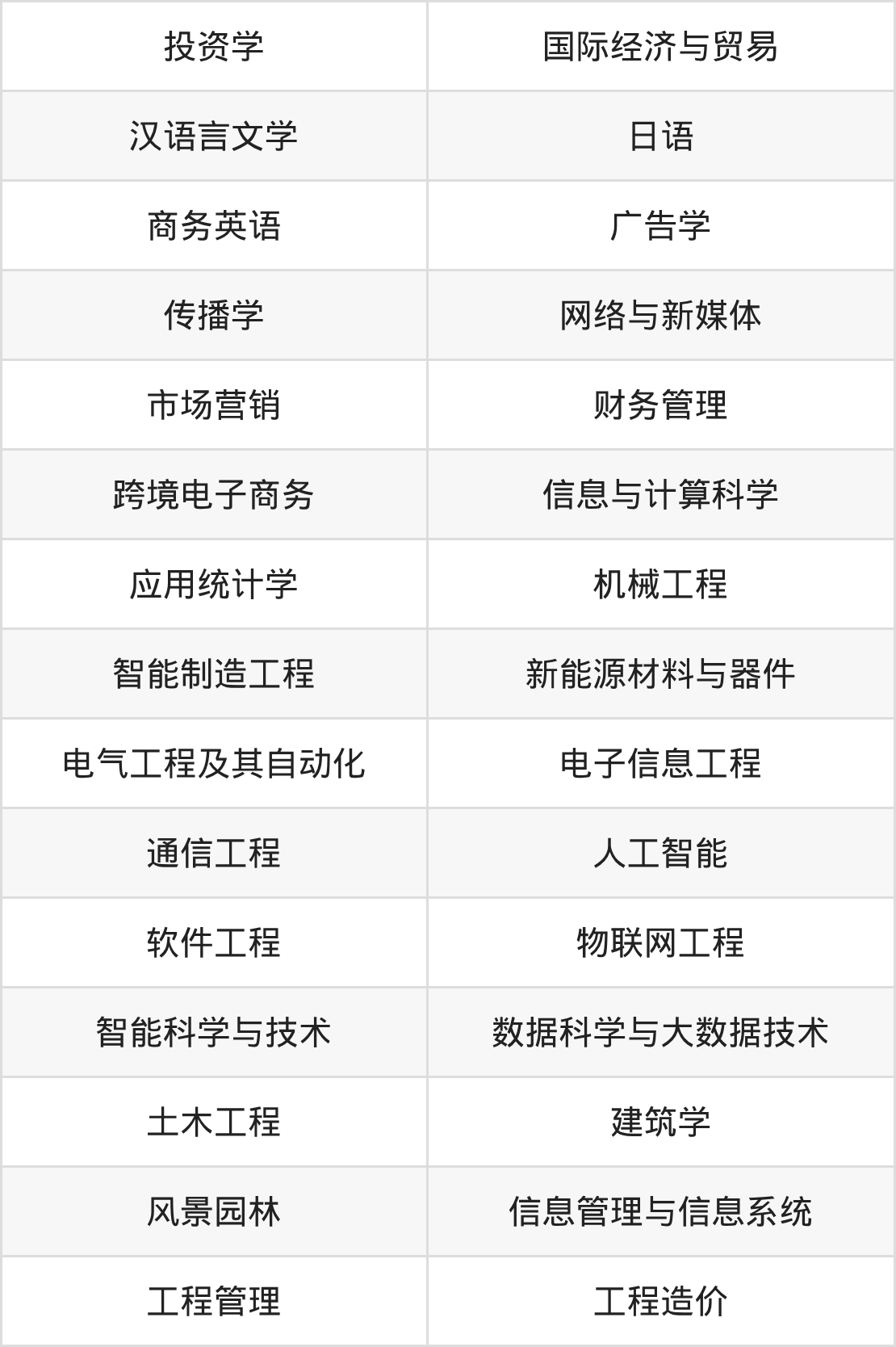 根据2025年福建高考招生计划可知,厦门工学院招生专业包含投资学、国际经济与贸易、汉语言文学等,完整版名单如下。
