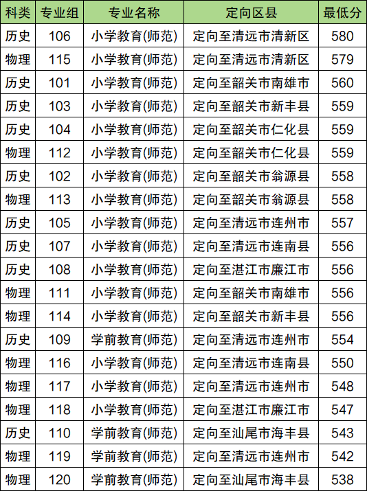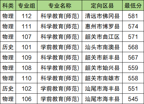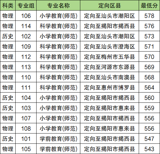 2025年韩山师范学院公费师范生最低分数线:历史类547分(第101组),定向揭阳市揭西县;物理类543分(第105组),定向揭阳市揭西县。