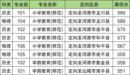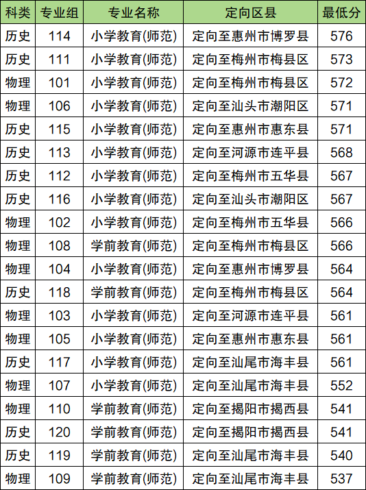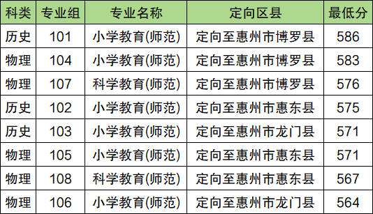2025年惠州学院公费师范生最低分数线:历史类571分(第103组),定向惠州市龙门县;物理类564分(第106组),定向惠州市龙门县。