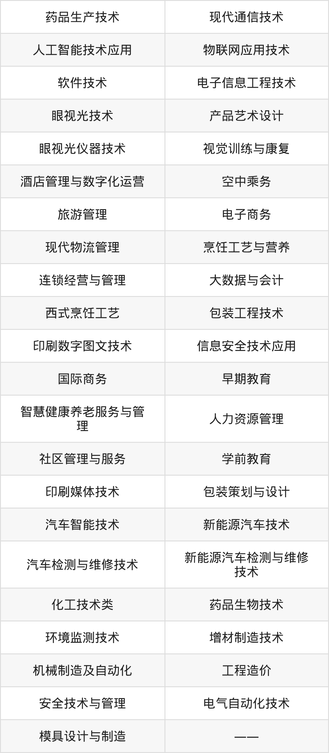 根据2025年天津高考招生计划可知,天津职业大学招生专业包含药品生产技术、现代通信技术、人工智能技术应用等,完整版名单如下。