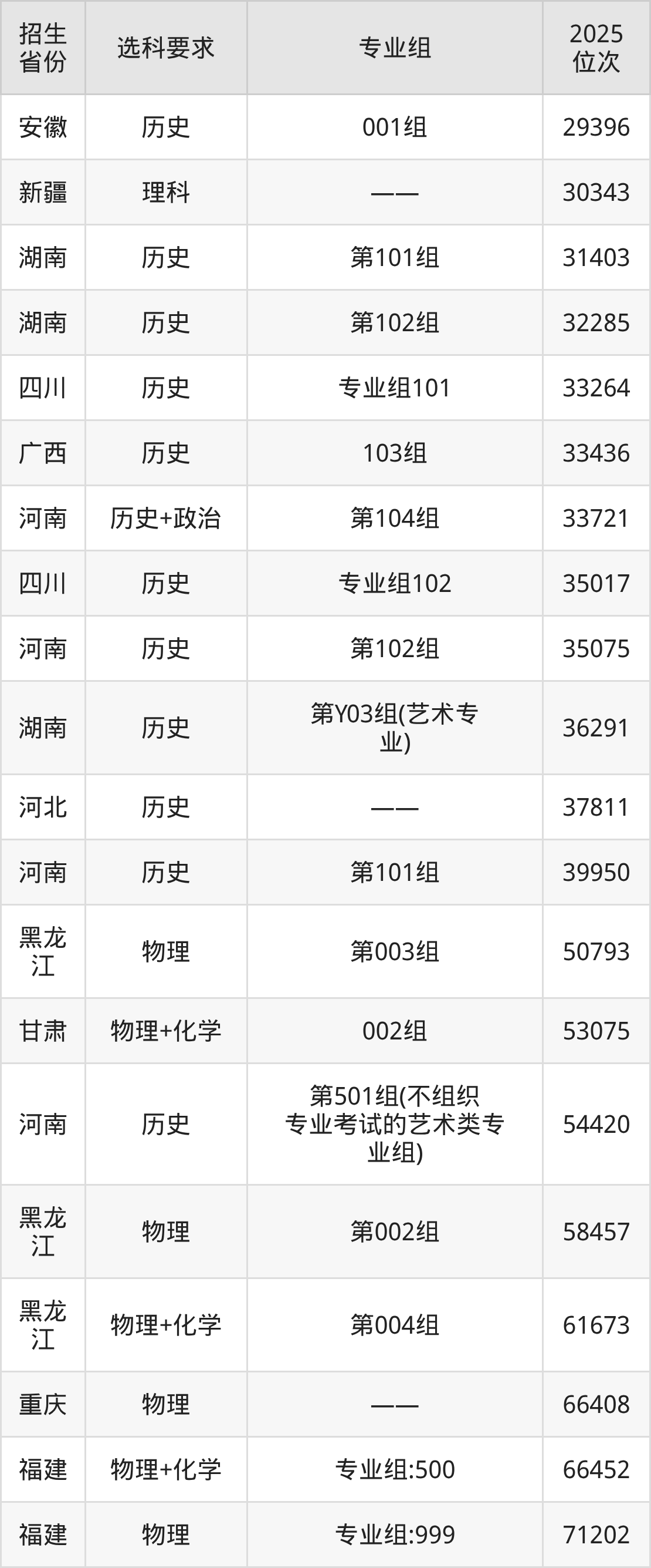福建技术师范学院2025年在全国各省的位次差异较大,最高位次是3415位(宁夏历史类)、最低位次是242790位(河南物理类)。各省具体位次请看下图: