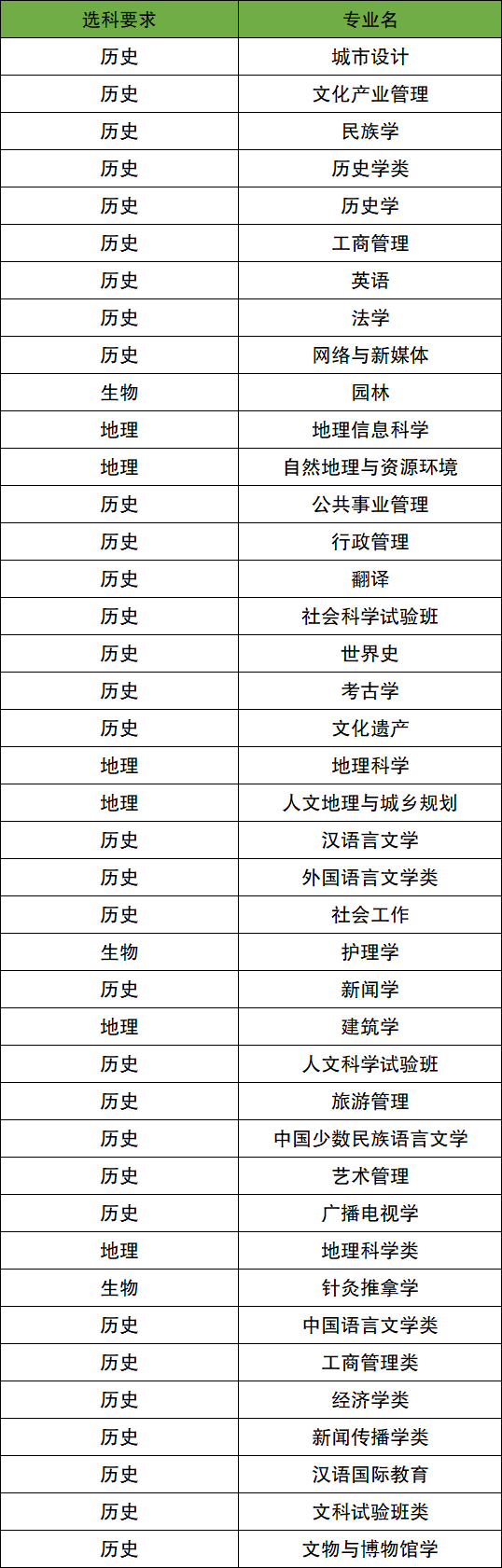 要求选科历史的专业:文化产业管理、民族学、历史学类、历史学、工商管理、英语、法学、网络与新媒体、公共事业管理、行政管理、翻译等;