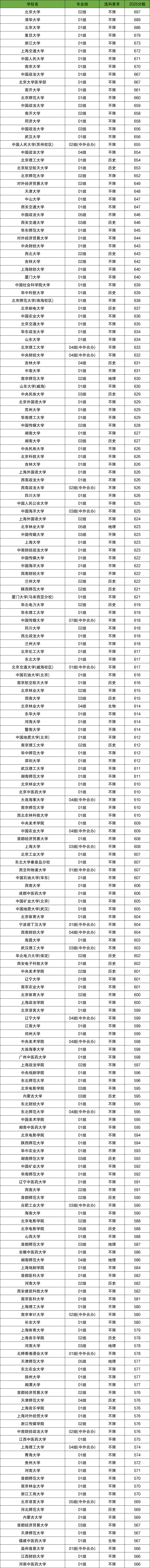 篇幅有限,下方为大家展示历地生可报考的本科大学录取分数线排名前200强名单: