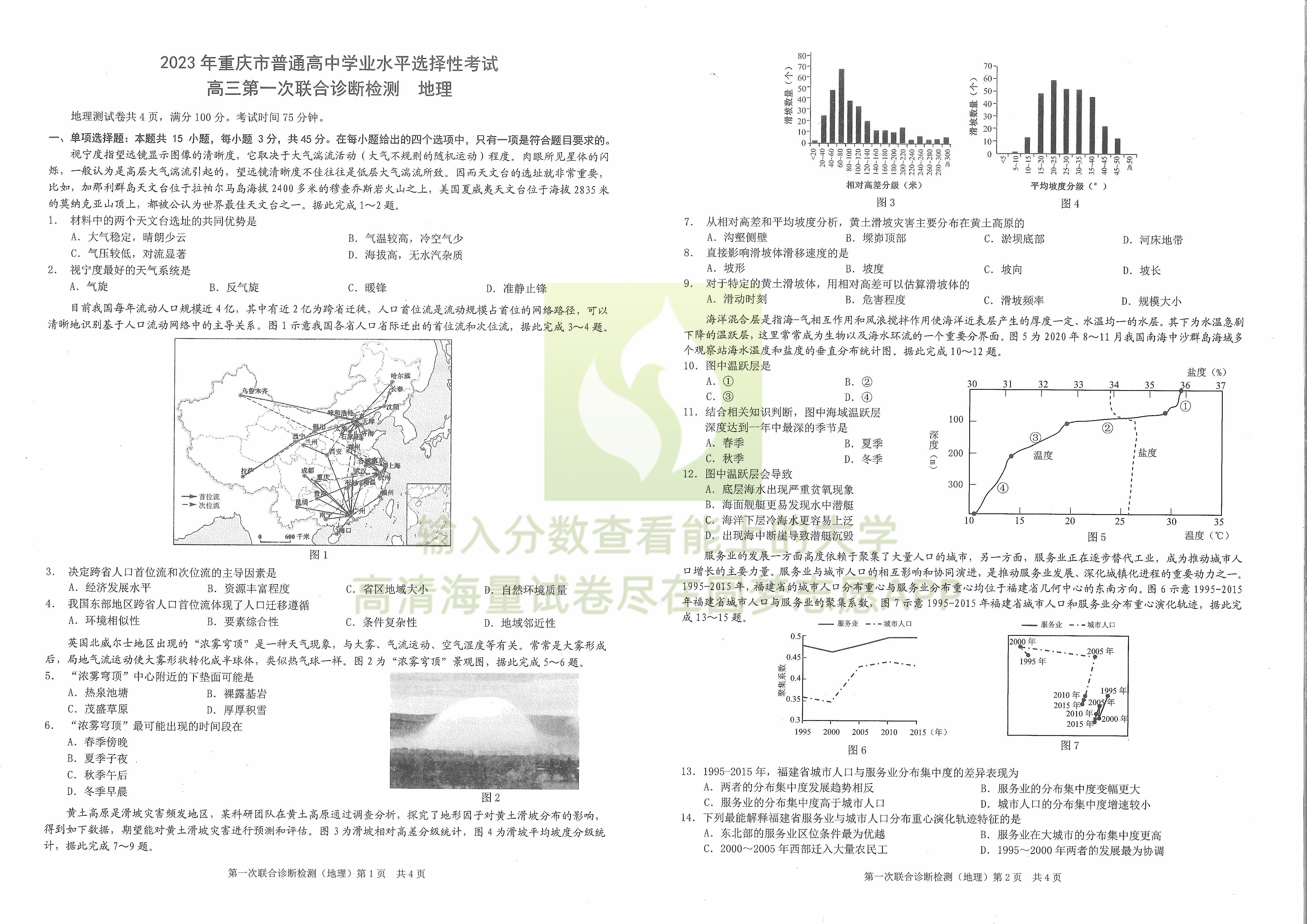 2023重庆一诊考试将于2023年1月8日开考,考试结束后本文将更新重庆市2023届高三第一次联合诊断性检测地理答案及试卷,下文为小编搜集整理的2023重庆一诊康德卷地理试卷及答案,供大家参考。