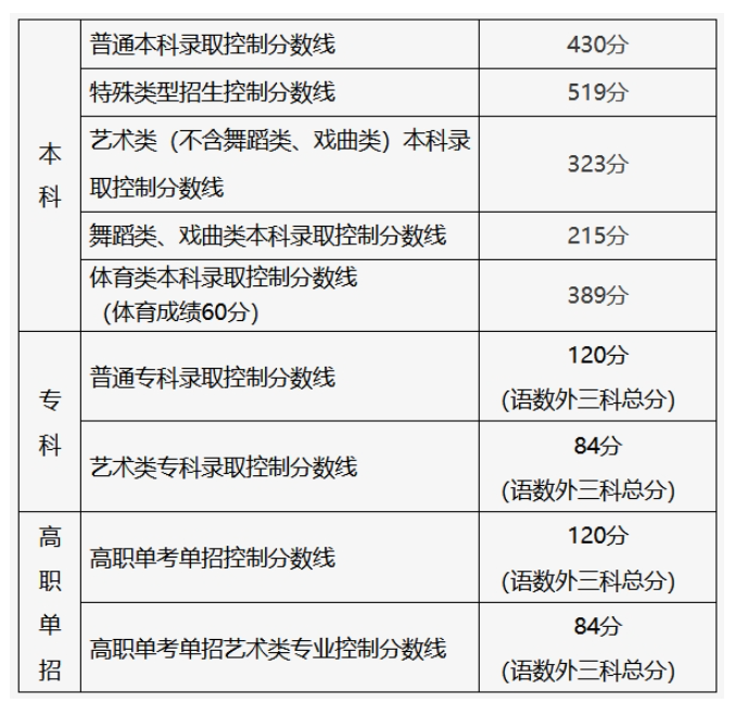 特殊类招生控制线:519分