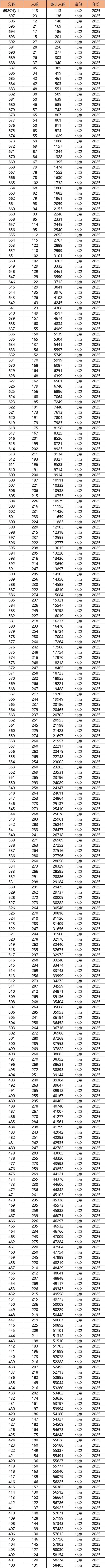 | 分数 | 本段人数 | 累计人数 |