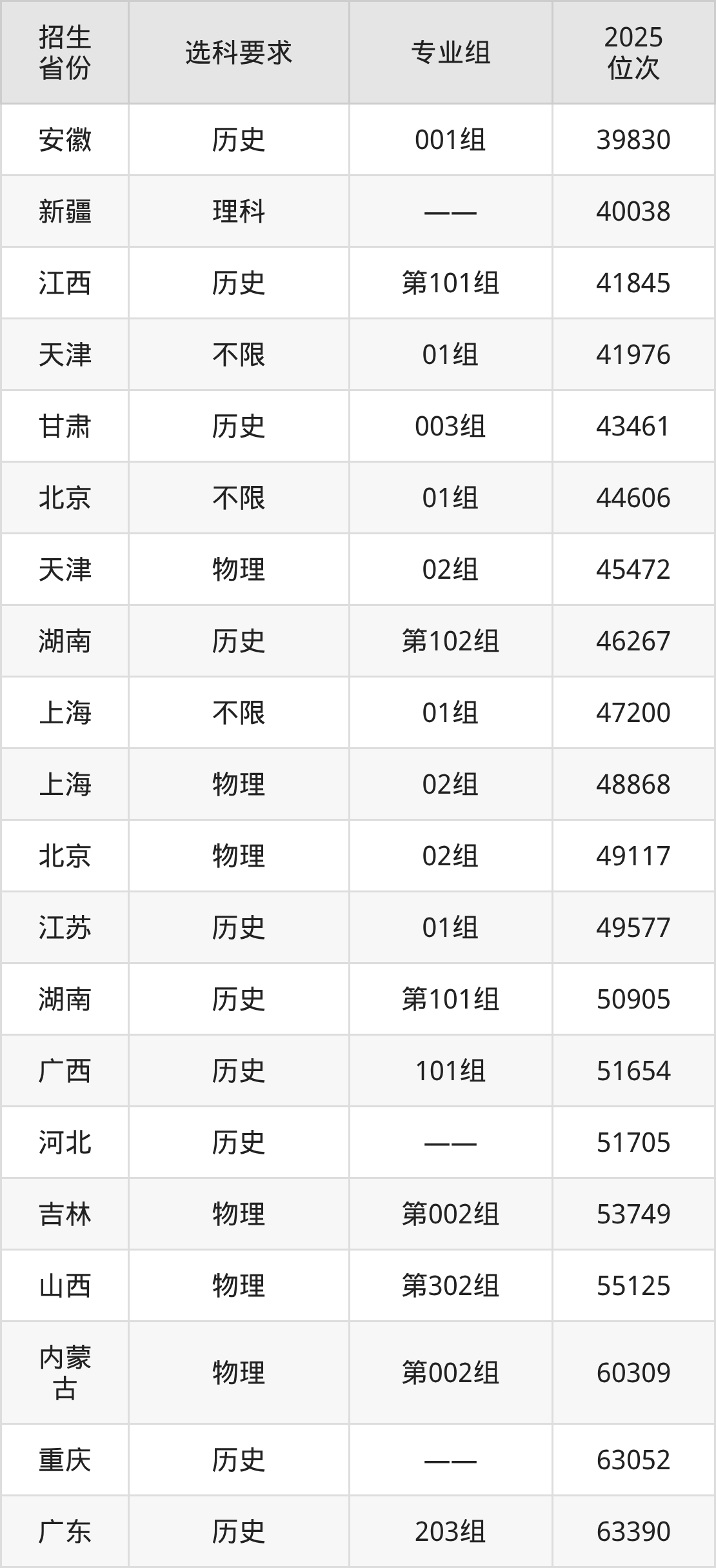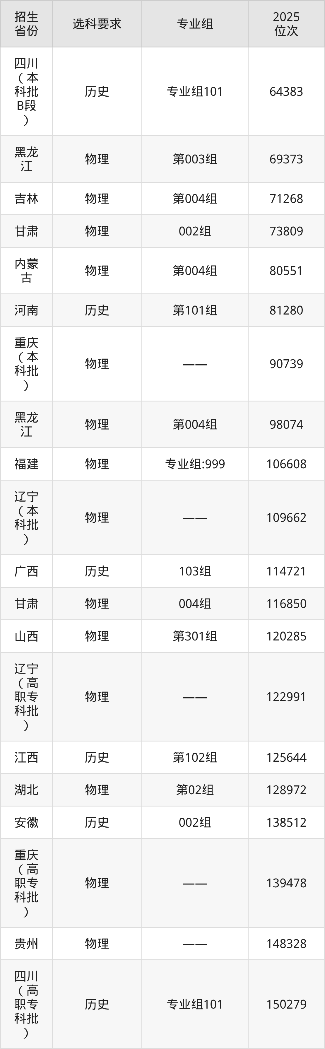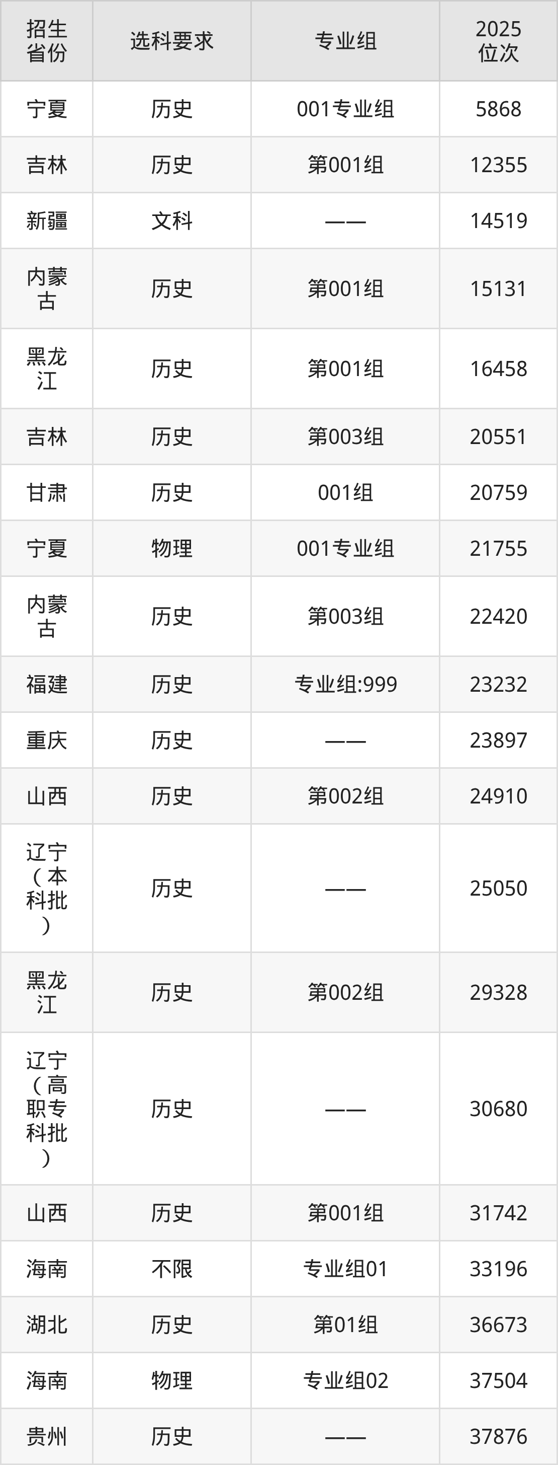 大连财经学院2025年在全国各省的位次差异较大,最高位次是5868位(宁夏历史类)、最低位次是348358位(河南物理类)。各省具体位次请看下图: