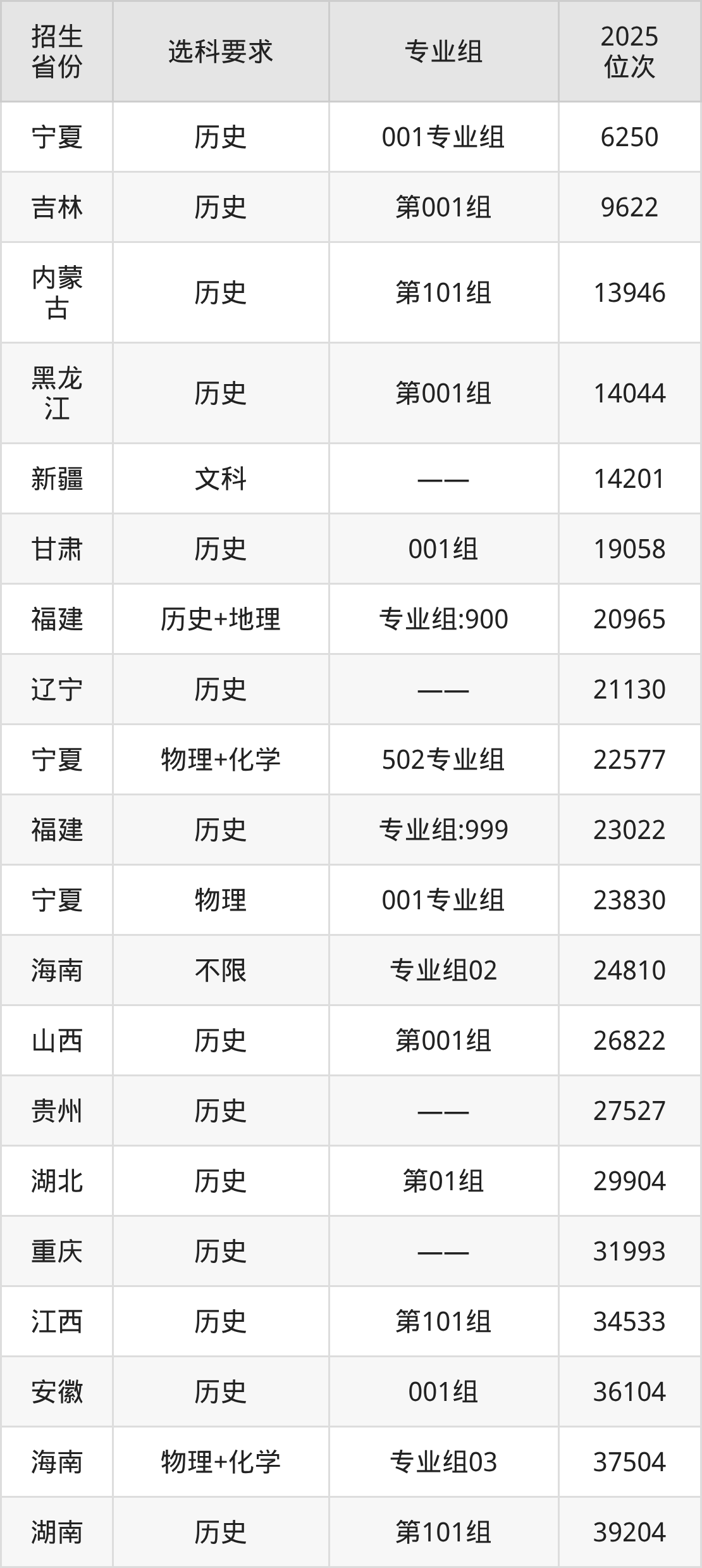 重庆对外经贸学院2025年在全国各省的位次差异较大,最高位次是6250位(宁夏历史类)、最低位次是277407位(山东)。各省具体位次请看下图: