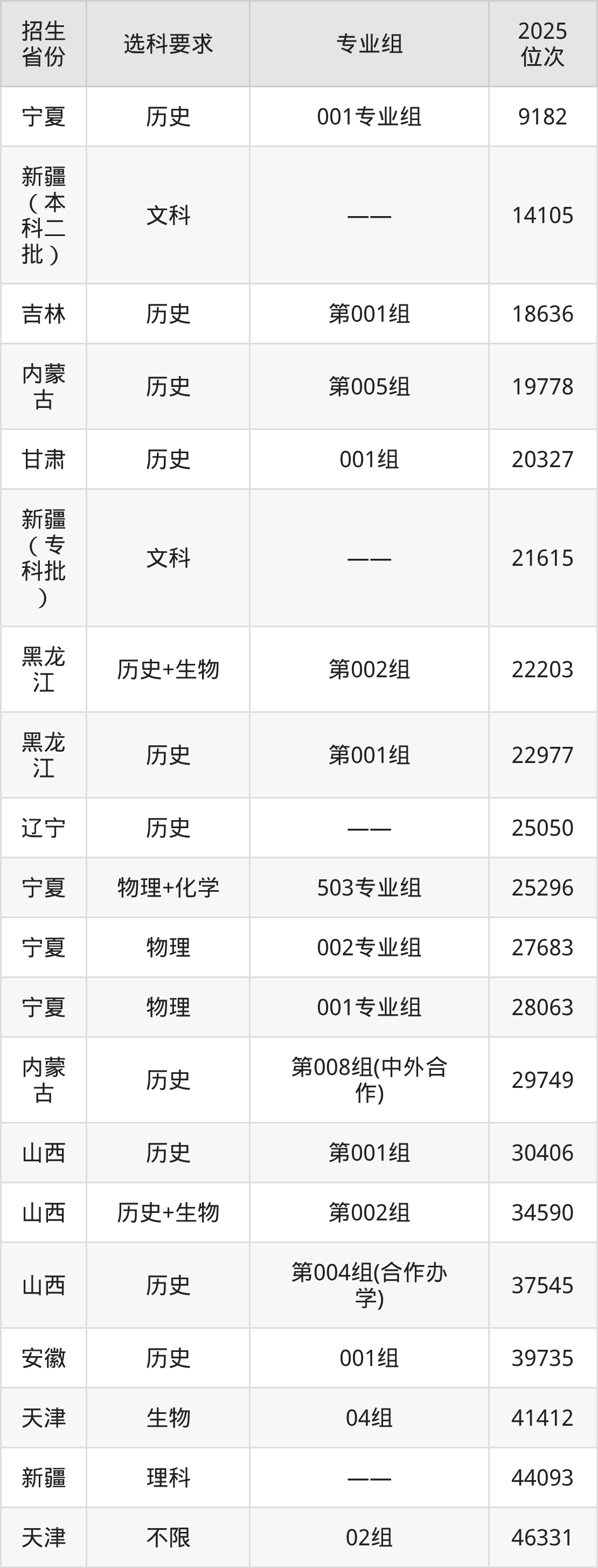 河北科技学院2025年在全国各省的位次差异较大,最高位次是9182位(宁夏历史类)、最低位次是361477位(河北物理类)。各省具体位次请看下图: