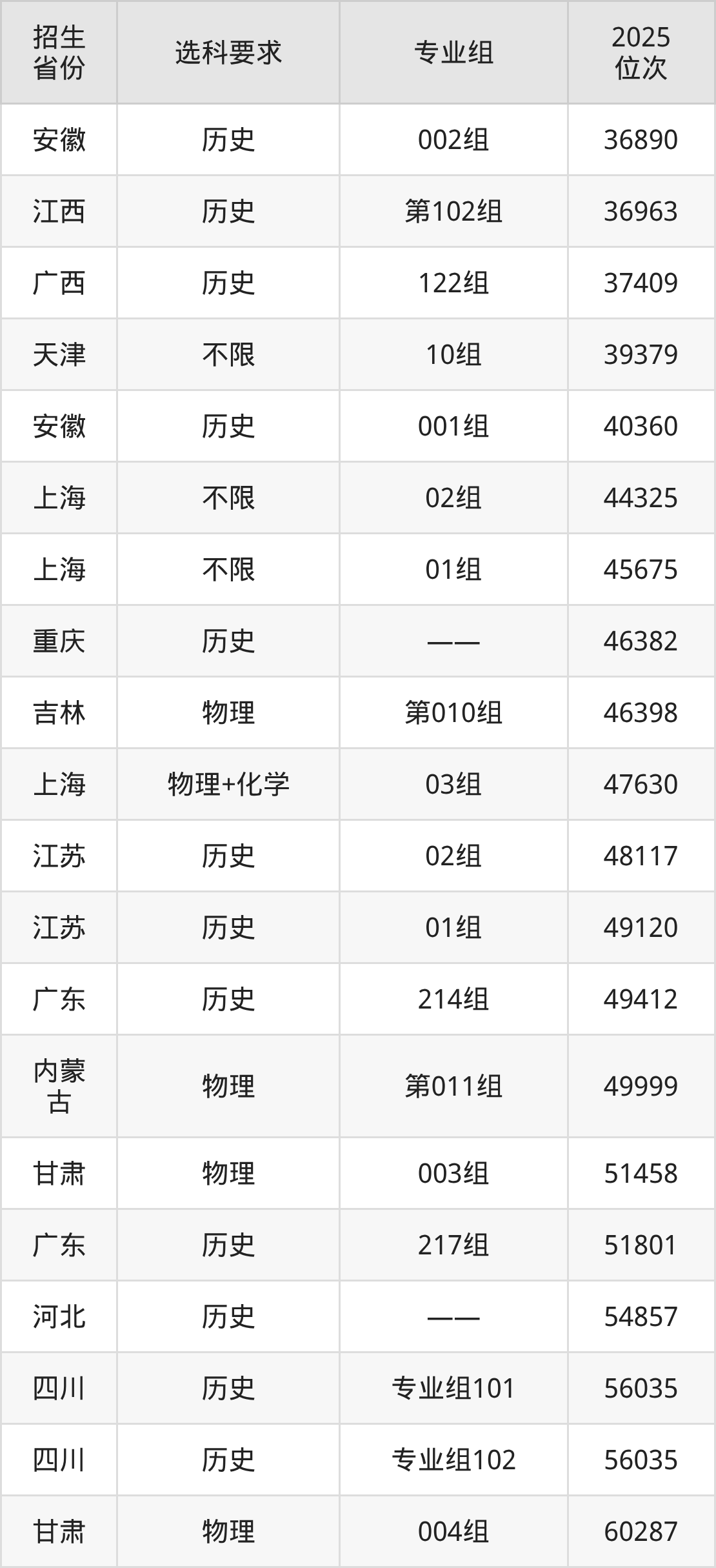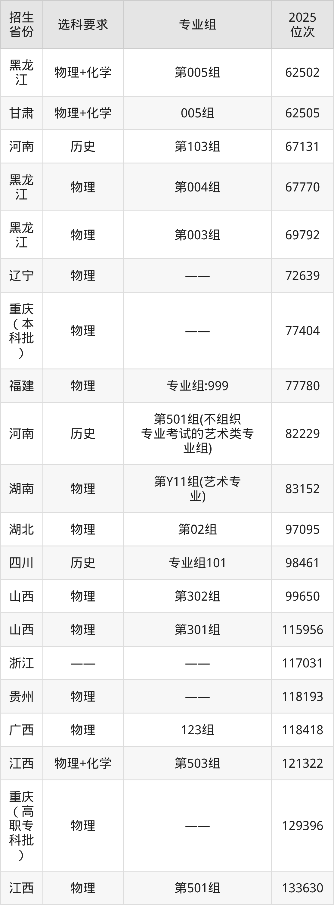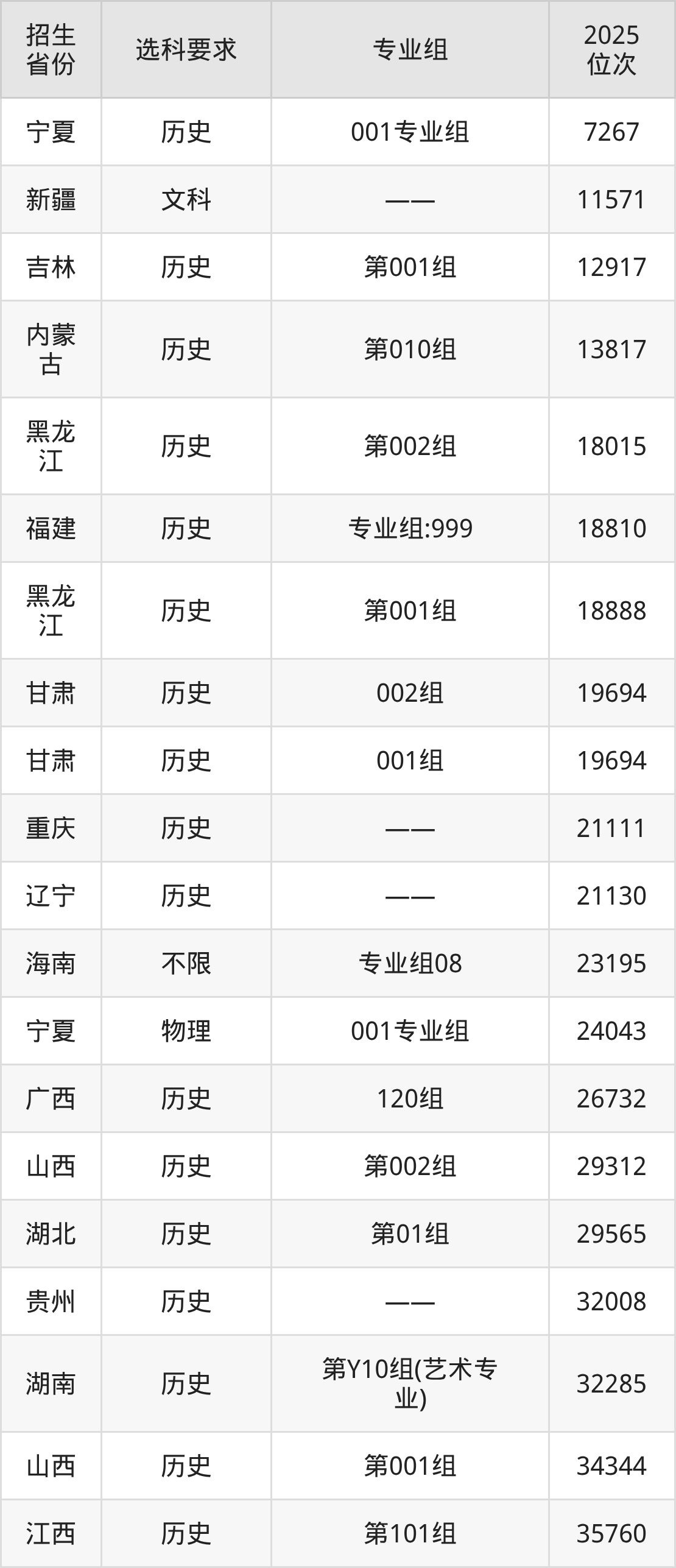 四川传媒学院2025年在全国各省的位次差异较大,最高位次是7267位(宁夏历史类)、最低位次是556025位(山东)。各省具体位次请看下图: