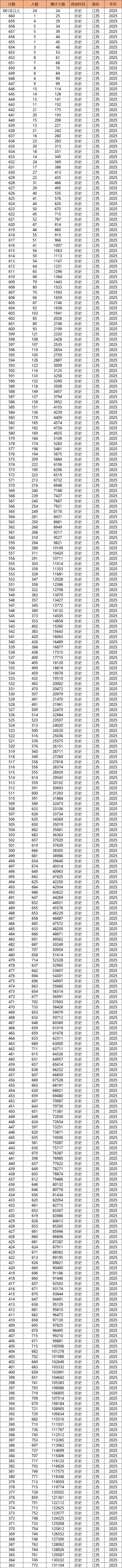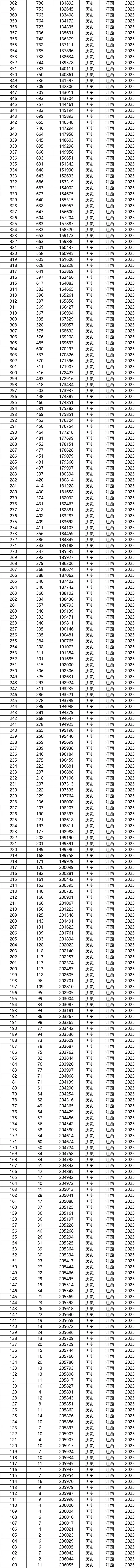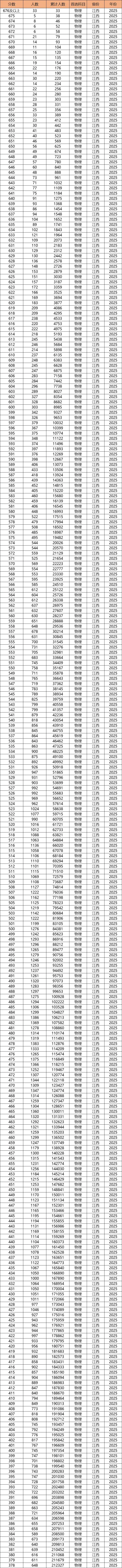 在江西2025高考历史类一分一段表中,661分及以上累计24人,对应位次排名为24名;650分及以上累计人数76人,同分位考生8人,650分对应位次排名为76名;600分及以上累计人数2199人,同分位考生93名,600分对应位次排名为2199名;更多分数段排名详情见下表:
