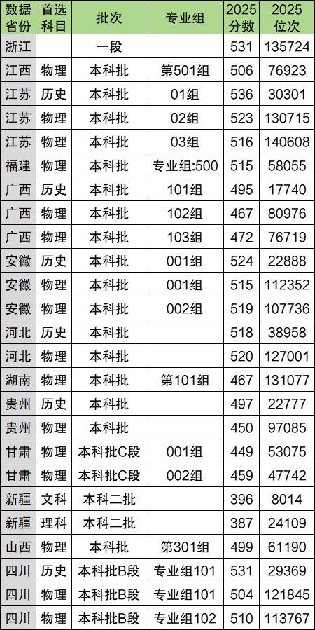 绍兴理工学院2025年在江西最低录取分数线为:物理类506分、76923名(501专业组)