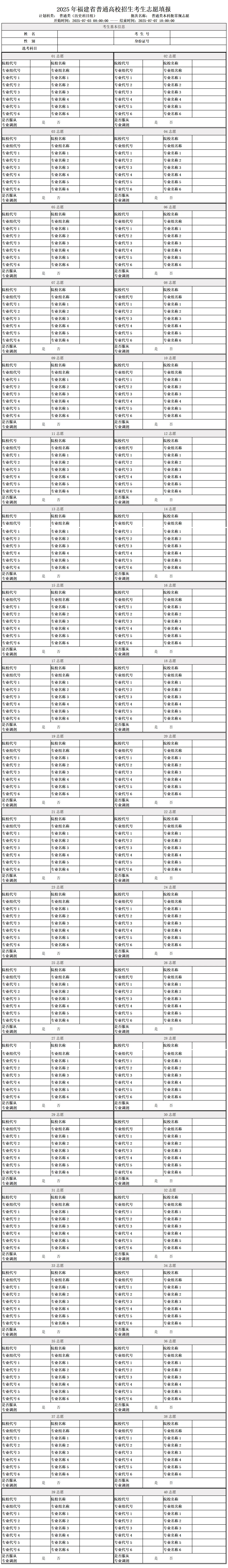 三、2026年福建高考志愿草表