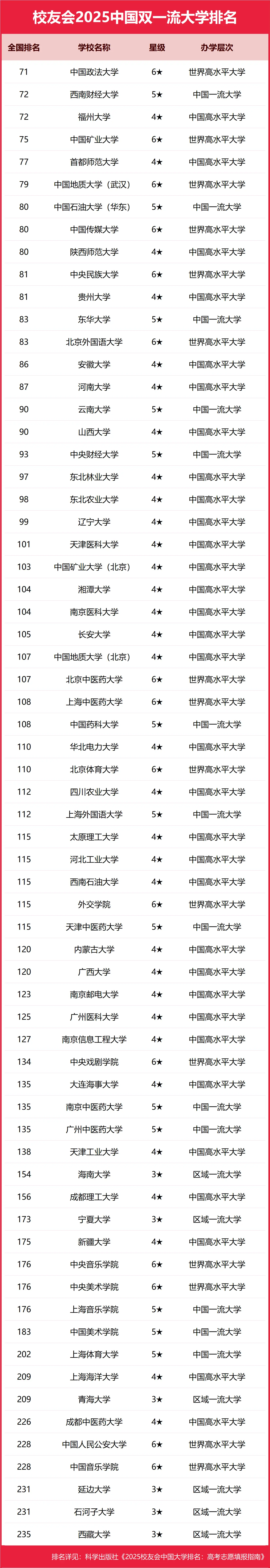 一. 中国双一流大学排名2025