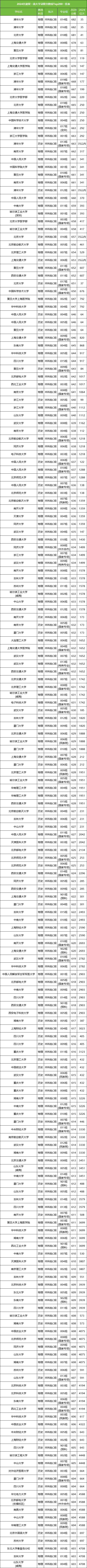 双一流大学第一名:北京大学(物理类665分、历史类651分);双一流大学第二名:清华大学(物理类663分、历史类661分);双一流大学第三名:中国科学院大学(物理类661分)。