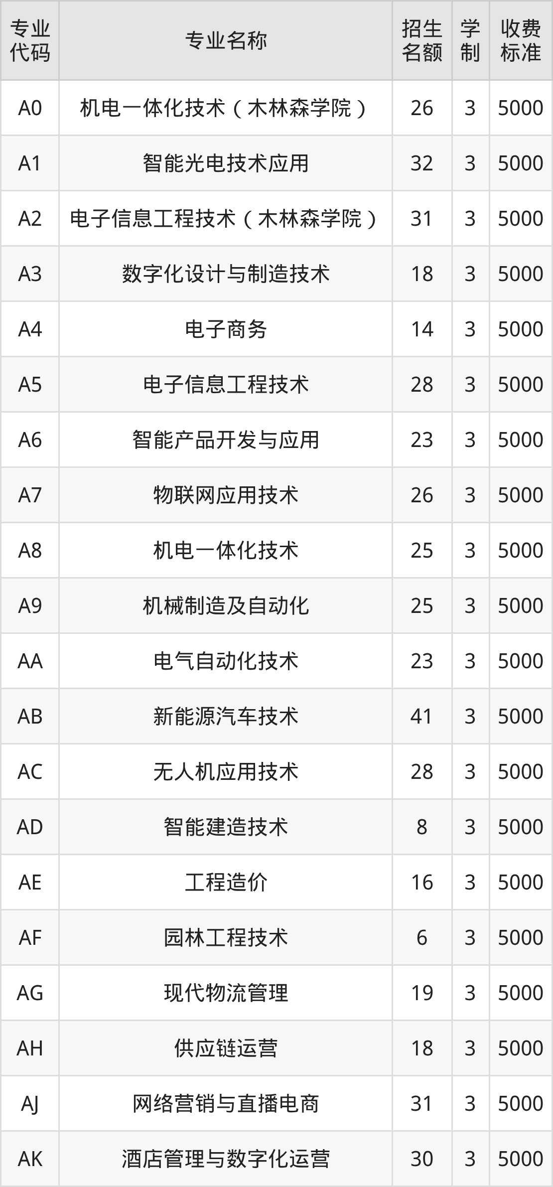 | 00 | 机电一体化技术(木林森学院) | 28 | 3 | 5000 |