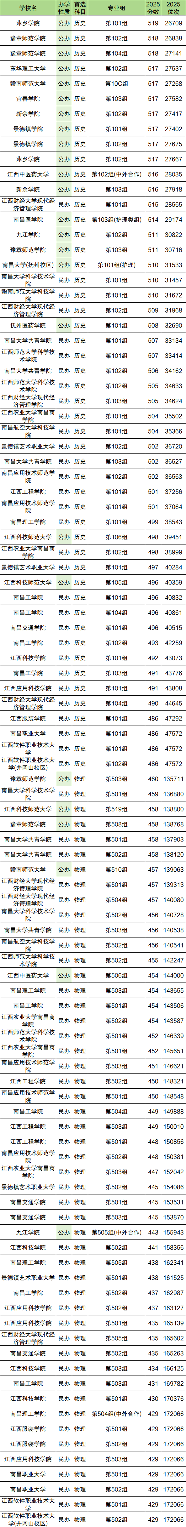 其中江西录取分数线最低的公办二本大学:历史类为江西科技师范大学,2025年最低分为496分;物理类为九江学院,2025年最低分为443分。