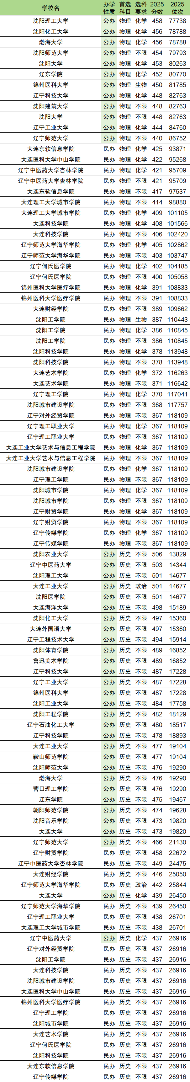 其中辽宁二本线最低的公办大学:历史类是辽宁中医药大学,2025年最低437分(擦线能上);物理类是辽宁师范大学,2025年最低440分(过线73分)。