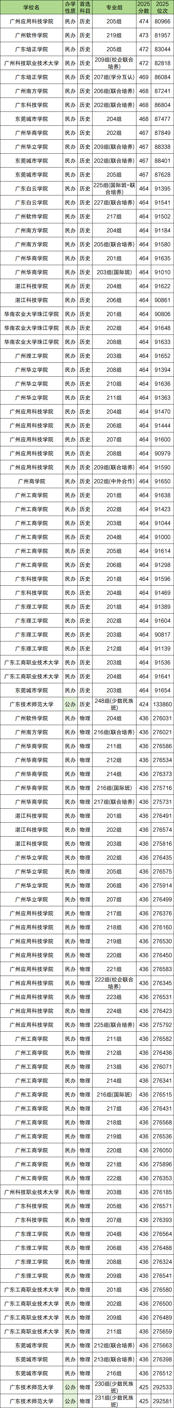 其中广东录取分数线最低的公办二本大学是:广东技术师范大学,2025年最低分历史类为424分、物理类为425分,对应的均为少数民族班专业组招生。
