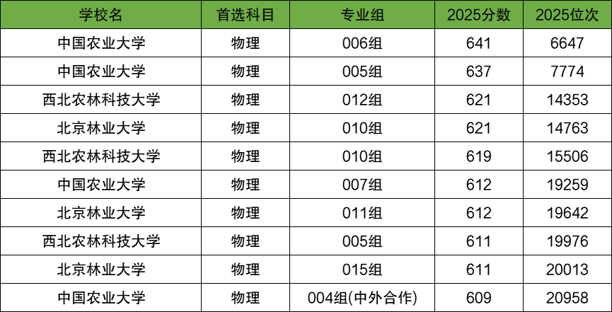 2025年全国本科农业大学在安徽物理类录取分数最高的是中国农业大学006组,2025年最低录取分数线为641分,位次为6647位。